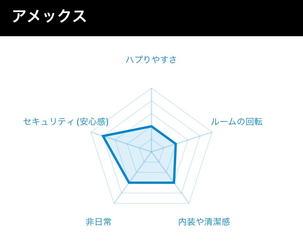 | アメックス | 丸の内駅 徒歩6分 | 15,000円(入会金5,000円込み) | 専用アプリあり/チケット制の飲食/漫画あり/比較的広め | 男女ともに中間層(高すぎず低すぎず) |