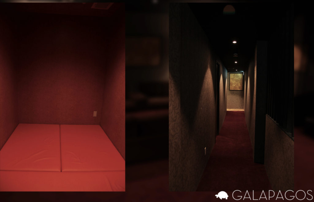 ・ルームは2部屋。5畳くらいの空間が2部屋。(左が赤で、右がオレンジ)